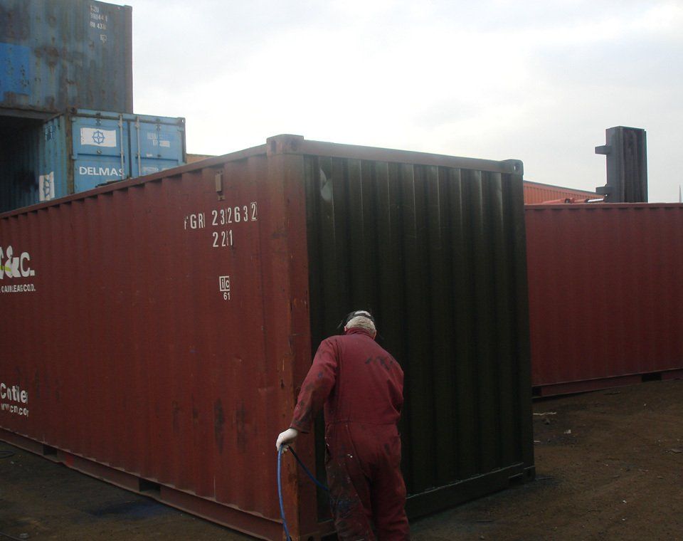 We can re-spray used containers with a rubberised container paint which makes the used containers look clean and fresh and also makes them last a lot longer. Containers really do get a new lease of life once they have been resprayed!